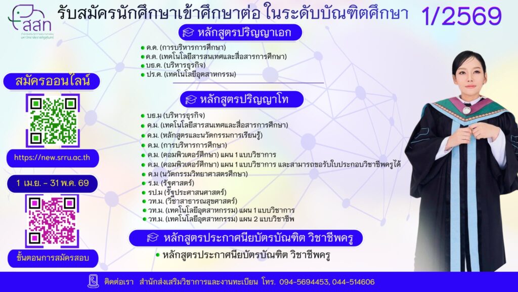 สอบถามรายละเอียดเพิ่มเติมได้ที่ สำนักส่งเสริมวิชาการและงานทะเบียน 044 514606